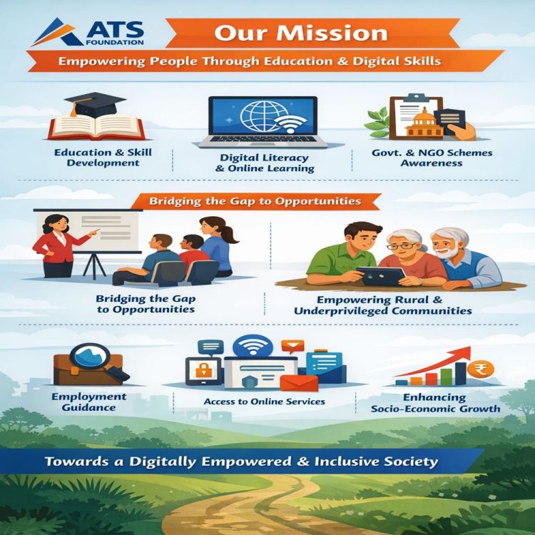 The mission of ATS Foundation is to empower individuals and communities through education, digital literacy, and skill development. The foundation is committed to providing accurate information and practical guidance related to government and non-government schemes, online services, employment opportunities, and computer education.