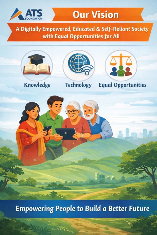 The vision of ATS Foundation is to build an inclusive, educated, and digitally empowered society where every individual has equal access to knowledge, technology, and opportunities for growth. The foundation envisions a future in which people are self-reliant, well-informed, and capable of using digital tools to improve their personal, professional, and social lives.